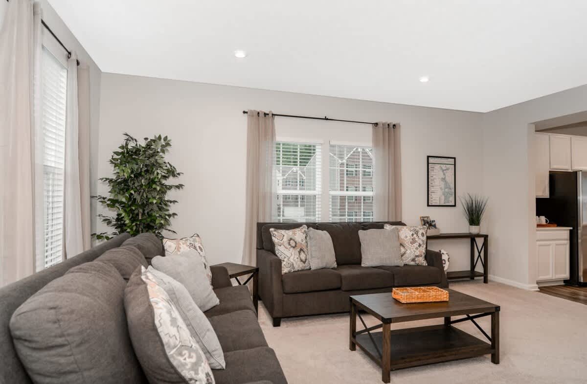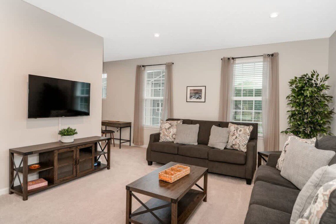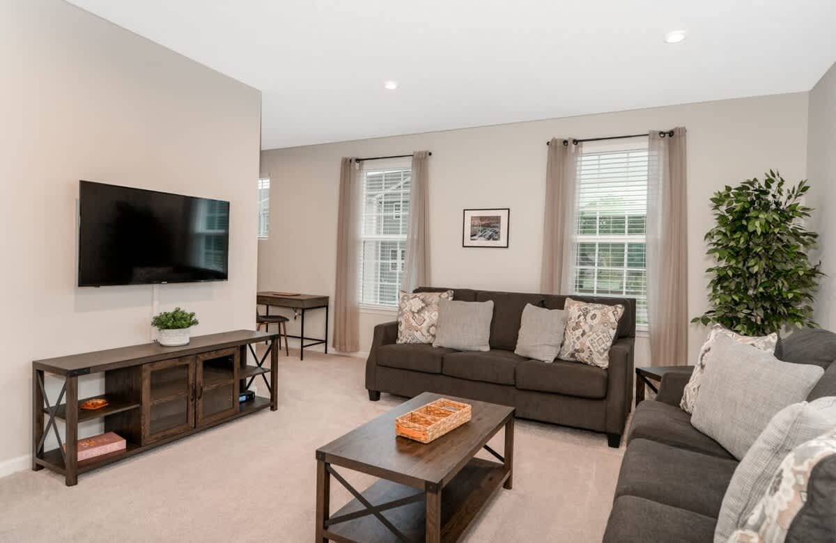 🛋️ Living Room: Step into a warm and inviting space made for relaxing or gathering with your favorite people. The open-concept layout flows effortlessly into the kitchen and dining area, creating the perfect spot for conversation and connection. Settle into the ultra-comfy sofa or cozy accent chairs as you stream your favorite shows on the Smart TV. Sunlight pours in through the large windows, giving the room a bright, welcoming feel from morning to evening.