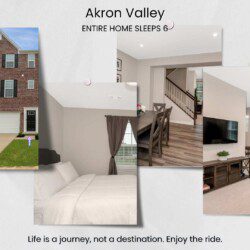 Experience modern comfort in this stylish 3-bedroom home on scenic Eckert Lane, one of Akron’s most desirable neighborhoods. Close to Downtown Akron, Cuyahoga Valley National Park, and Blossom Music Center, it’s perfect for families and travelers. Enjoy an open living area, fully equipped kitchen with a large island, cozy beds for up to 6 guests, a Keurig coffee station, and a peaceful space to relax after a day out.