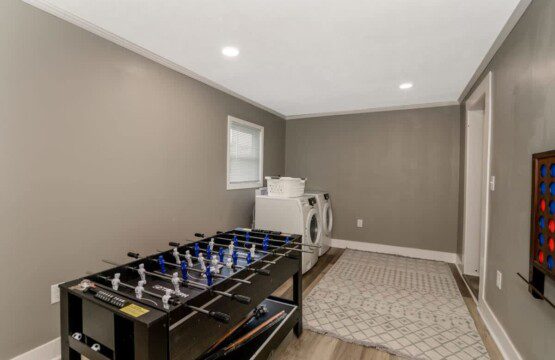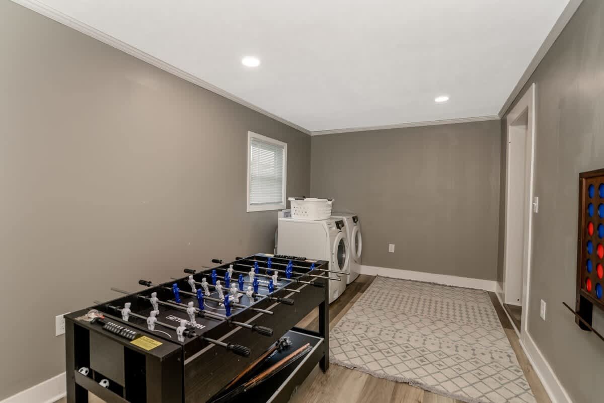 🎯 Fun game room and laundry area with foosball, ring toss, and Connect Four