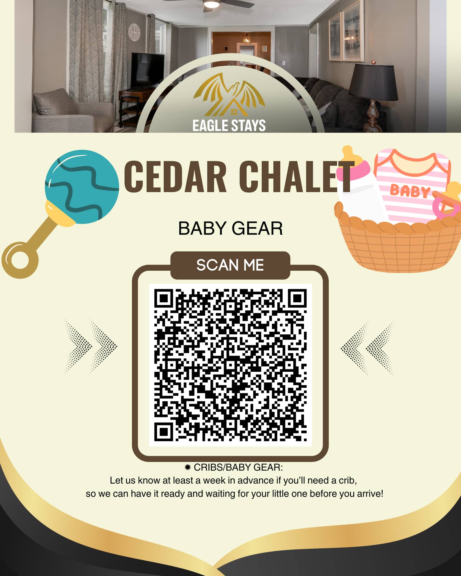✹ CRIBS/BABY GEAR: Let us know at least a week in advance if you’ll need a crib, so we can have it ready and waiting for your little one before you arrive!