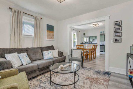 🛋️Living Room: Step into a bright, open living area with ample seating, modern light fixtures, and soft decor touches that make it the heart of the home. Whether you’re relaxing after a day at the beach or streaming a movie on the flat-screen TV, this room is all about comfort and connection.