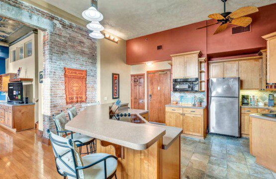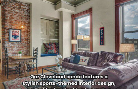 Welcome to the “Warehouse District Skyline Retreat” where Cleveland Art & Sports Culture greets you from the moment you walk through the door. This beautifully appointed 2 Bed/2 Bath w Tub condo sleeps 6 comfortably! Make yourself right at home on the comfy couches in the living room w/expandable dining table & enough chairs for everyone. Take a nap on the lovely, cushioned window seat overlooking downtown buildings. See Lake Erie from every room with a window!
